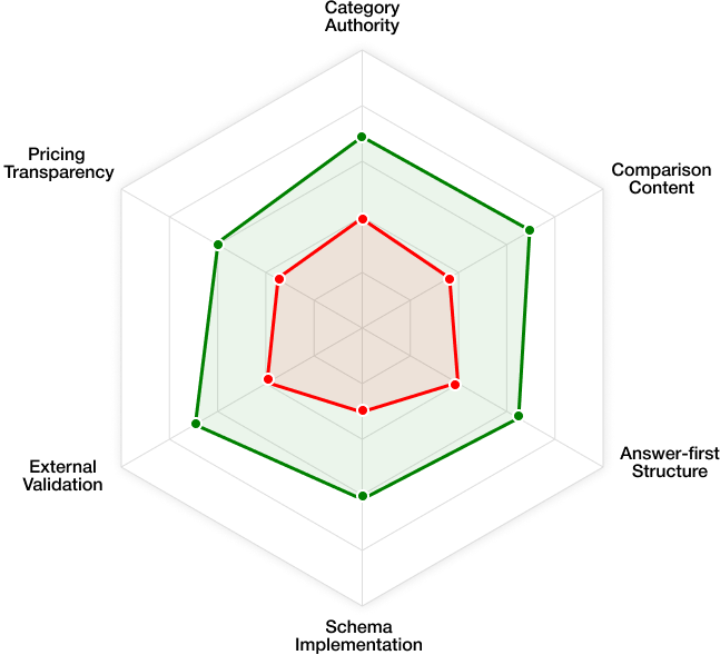 Where content investment is needed to match or exceed competitive benchmarks in the six dimensions that AI systems prioritize for brand mentions